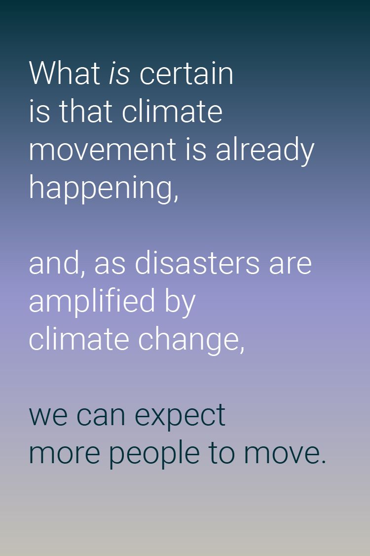 Climate change is already amplifying many natural environmental hazards, resulting in both sudden-onset disasters and slower-onset consequences. Amid these impacts, people are moving.